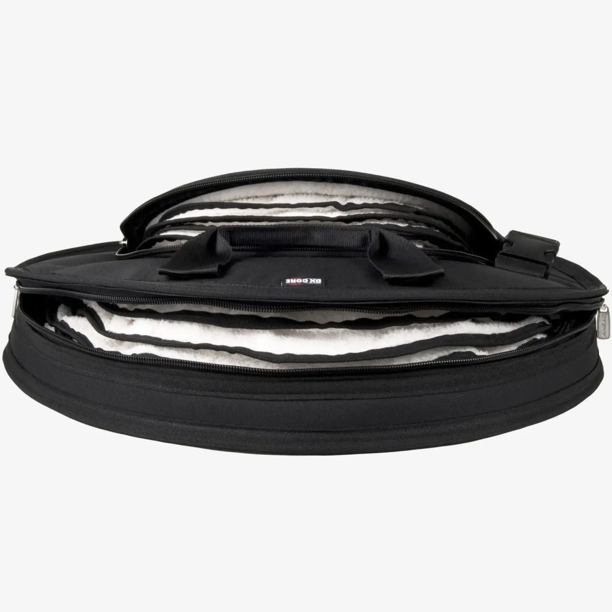 Verstärkte Konstruktion schützt die Becken über die gesamte Fläche, einschließlich Kanten und Mittelloch. Weiche Trennfächer verhindern direkten Kontakt zwischen den Becken. Entwickelt für Transport und täglichen Einsatz.