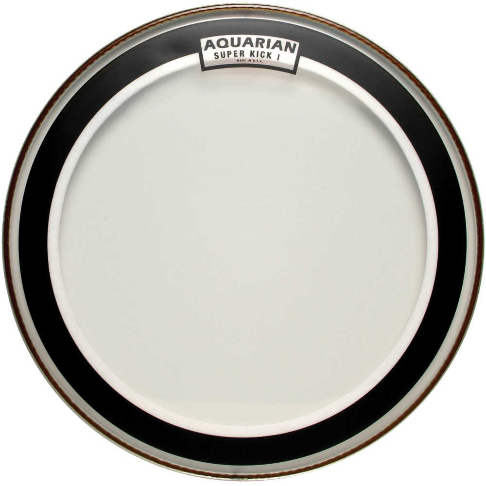 Einlagige Membran, Clear, Serie Super-Kick. Das beliebteste Fell für Bass Drum. Verwendetes "Floating Muffling System". Spezieller Dämpfer auf der Innenseite, der einen tiefen und vollen Klang erzeugt. Größe: 22".