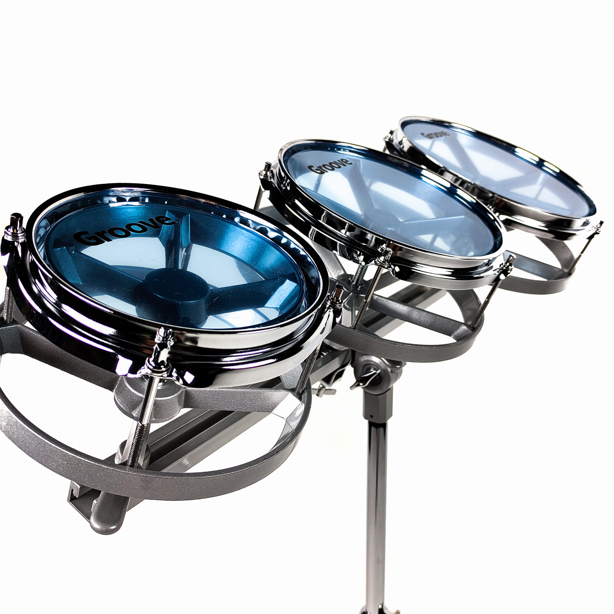 GRV Rototomys sind hochwertige Schlaginstrumente, die schnelles und präzises Stimmen durch Drehen der Toms ermöglichen. Verchromtes Hardware garantiert Langlebigkeit und Stabilität, und im Set ist ein stabiler Ständer mit Doppelbeinen enthalten, der sicheren Halt für jedes Rototom bietet.