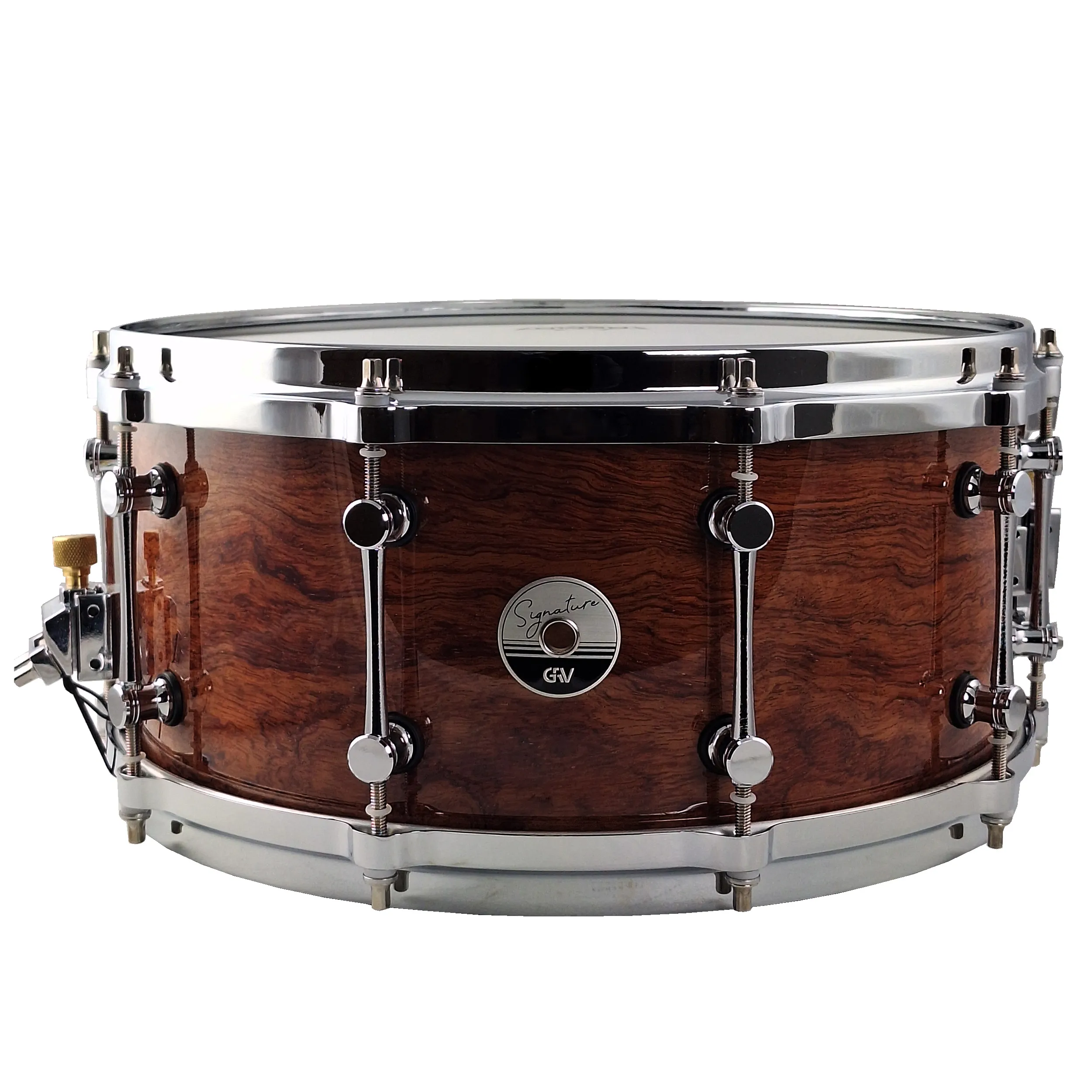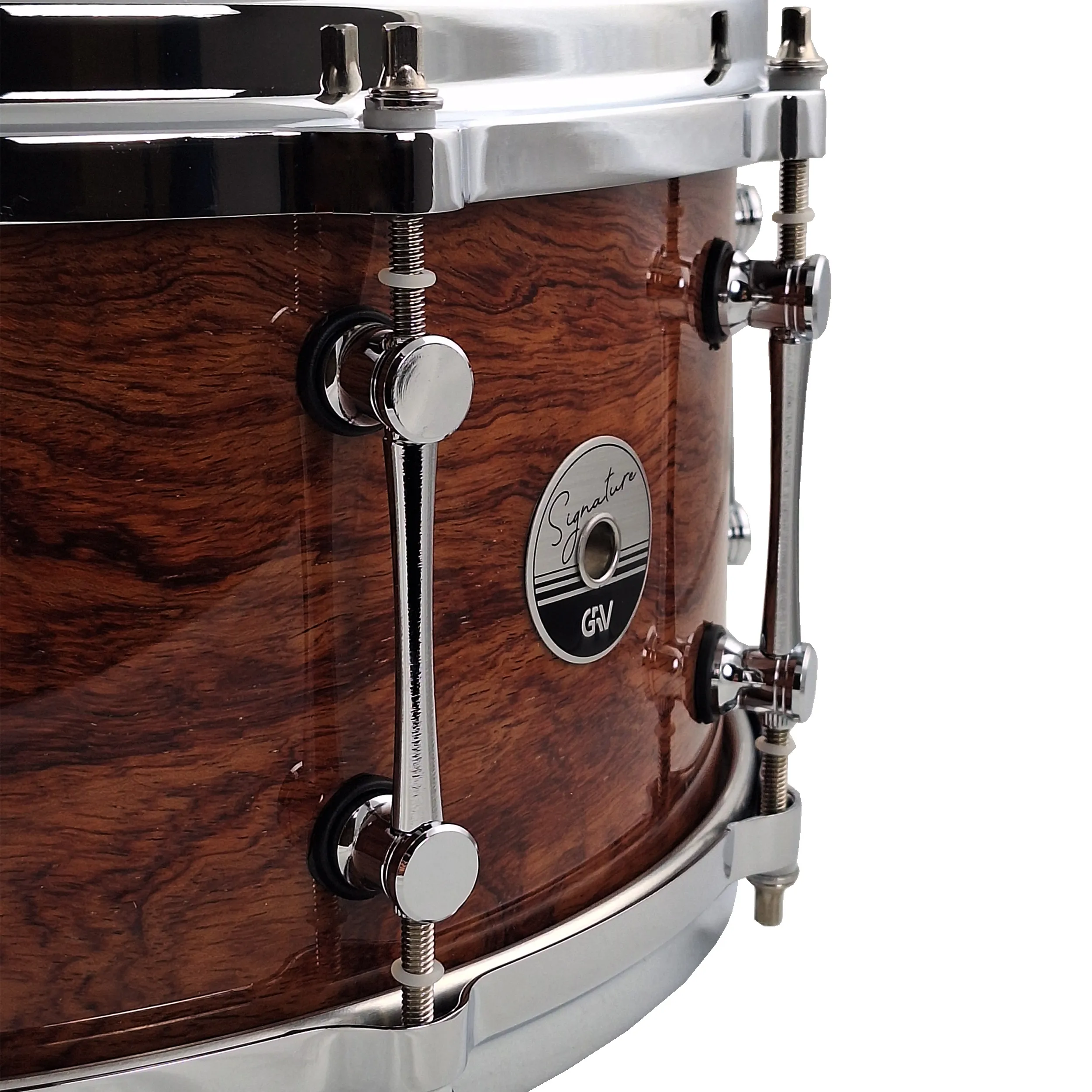 Die Serie Signature von GRV ist nicht nur ein Beweis für Kunstfertigkeit, sondern auch ein neues Kapitel in der Geschichte der Schlagzeuge. In dieser perfekten Kollektion sticht eine Snare hervor – die GRV Signature Bubinga, die höchste Standards und Einzigartigkeit verkörpert. Es ist ein Instrument, das nicht nur mit Präzision, sondern auch mit Leidenschaft gefertigt wurde und luxuriöse Materialien mit innovativen technischen Lösungen verbindet.