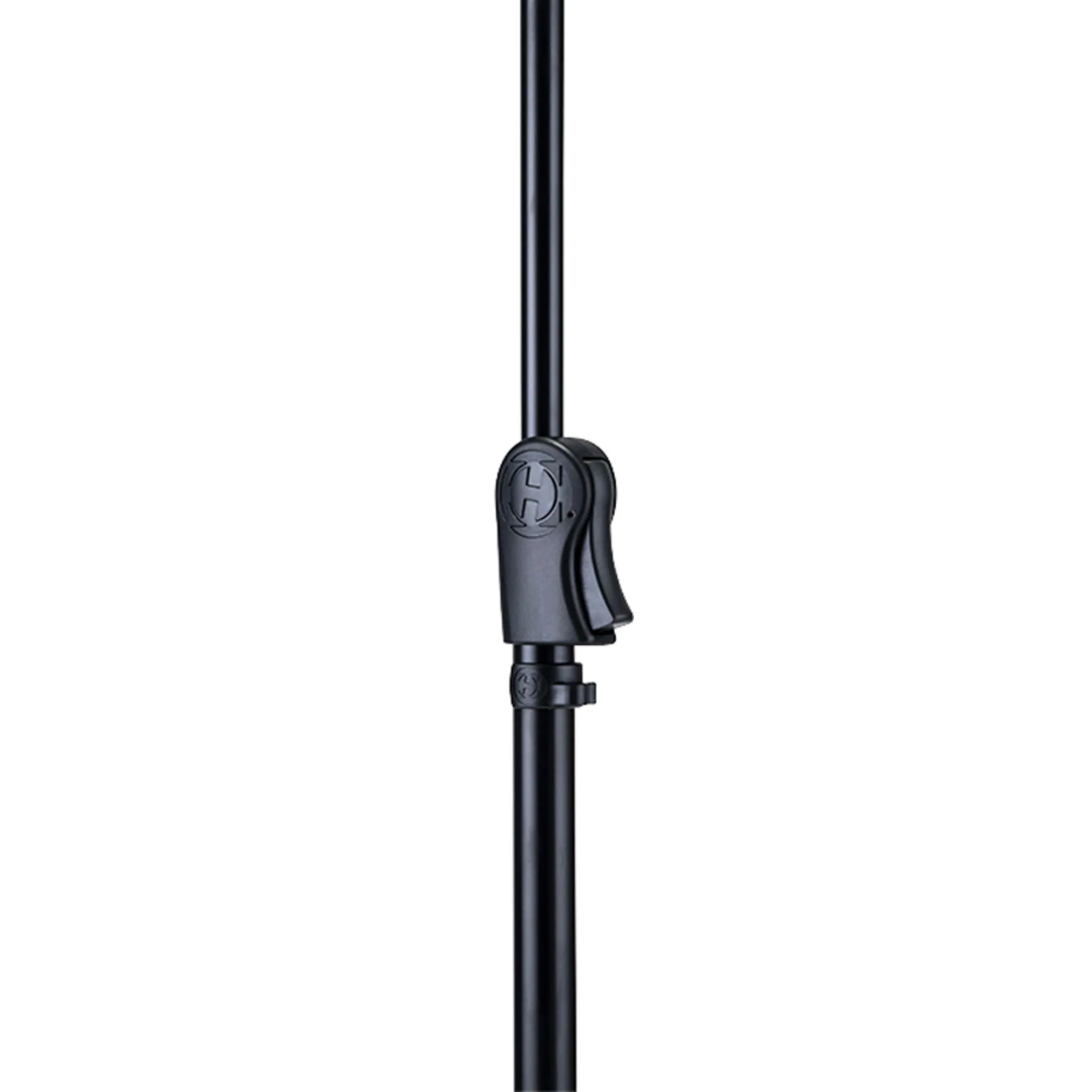 Mikrofonständer mit Dreibeinbasis und Galgenarm. Ausgestattet mit EZ Mic Clip, 2-in-1 Boom Clamp und dem EZ Clutch Höhenverstellsystem.