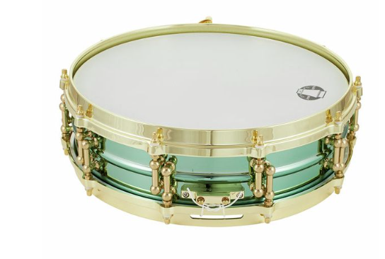 Die personalisierte Snare, signiert mit dem Namen von Carl Palmer, wurde für Lautstärke und komplexe Klarheit entwickelt. Der 14x3,7" Messingkorpus ist grün lackiert, um ein atemberaubendes Aussehen zu erzielen. Ausgestattet mit Messing-Lugs und gegossenen Spannreifen. Mehr als nur ein „Power-Piccolo“, ist jedes Modell handsigniert.