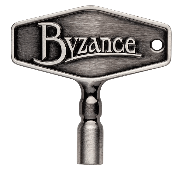 Das funktionale und auffällige Design des Byzance Drum Key von Meinl symbolisiert die Byzance-Becken – dunkel und erdig, zugleich raffiniert und präzise. Eine Seite zeigt das Byzance-Logo, die andere das Meinl-Logo. Die antike, verzinnte Oberfläche zusammen mit der profilierten Form verleiht ein einzigartiges Aussehen. Einfach zu stimmen, ist das Flügeldesign breit genug für schnelle Anpassungen oder einen Wechsel des Kopfes. Das Schlüsselanhängerloch ermöglicht das Befestigen des Byzance Drum Key am täglichen Schlüsselbund.