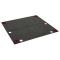 Er verfügt über vier verstärkte Öffnungen im Teppich, die helfen, die Kabel rund um das Schlagzeug ordentlich zu halten. Beschwerte Ecken sorgen dafür, dass der Teppich flach auf dem Boden liegt und sich nicht kräuselt. Das beiliegende Quick-Set Markers Set von Meinl ermöglicht es, die Position von Pedalen, Stativen, Rahmen usw. auf dem Teppich zu markieren und erleichtert das erneute Aufstellen des Sets.