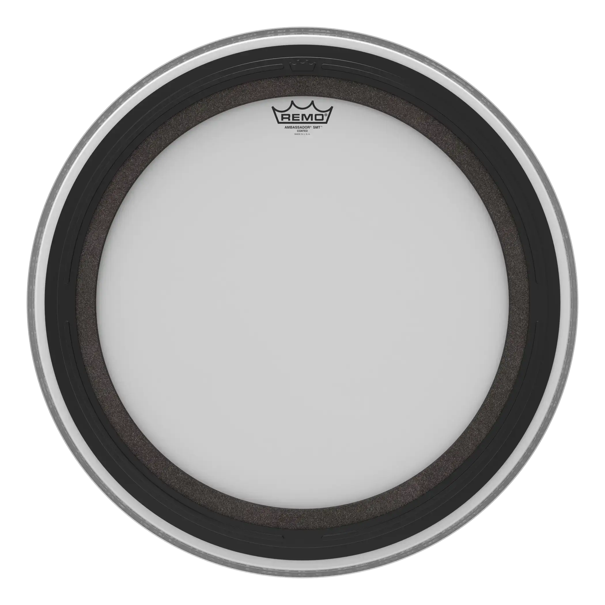 Der Ambassador SMT Coated ist ein Bassdrum-Fell mit Sub Muffl Technology. Es handelt sich um ein einlagiges Fell mit einer Dicke von 10 mil, das zusätzlich einen äußeren Dämpfrand mit Akustikschaumstoff besitzt. Der Einsatz dieses Fells sorgt für zusätzlichen Attack und betont die tiefen Frequenzen. Ideal für den Einsatz live und im Aufnahmestudio.