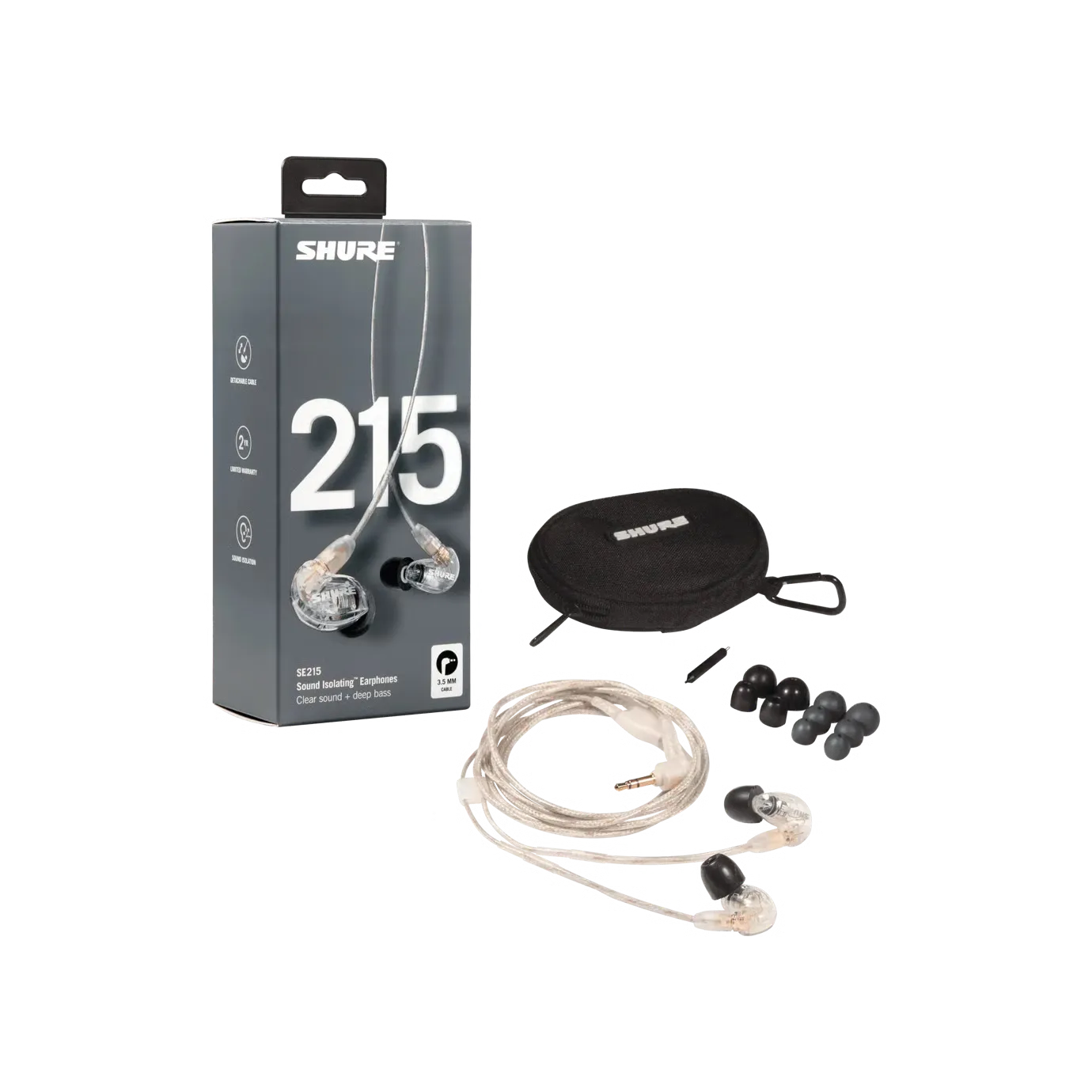 Im Lieferumfang enthalten: zweijährige Garantie, abnehmbare SE215 Sound Isolating™-Kopfhörer, Standard-3,5-mm-Audiokabel, Satz anpassbarer Ohrstücke (Fit Kit) sowie Aufbewahrungsetui.